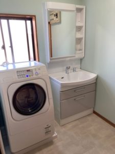 築30年経ち、洗面台の劣化が目立つようになったので、洗面所のリフォーム工事を依頼されました。 古い洗面台と洗濯パンを取り除いた状況です。床のクッションフロアと壁も張り替えます。 床のクッションフロアは汚れが目立たない凹凸 […]