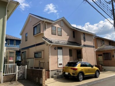 13年前ぐらいに塗装工事をして以来、汚れ、苔、外壁モルタルのひび割れ、破風板の劣化などが目立ち始めたため外壁塗装工事の依頼を受けました。 足場を組み終わった状態です。 外壁モルタルのひび割れをサンダーでVカットして補修を […]