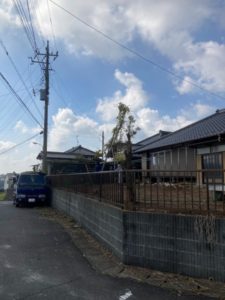 樹木が高く生い茂って、道路や電線に追いかぶさってしまったので、伐採の依頼を受けました。 庭の除草作業の依頼も受けました。 除草作業が終わり、きれいになりました。 樹木の伐採も終わり、家屋も見えてすっきりしました。