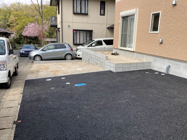 お客様が人工芝を敷いてドックランが完成しました。元気な愛犬ポン君も自由に遊べて喜んでいます。